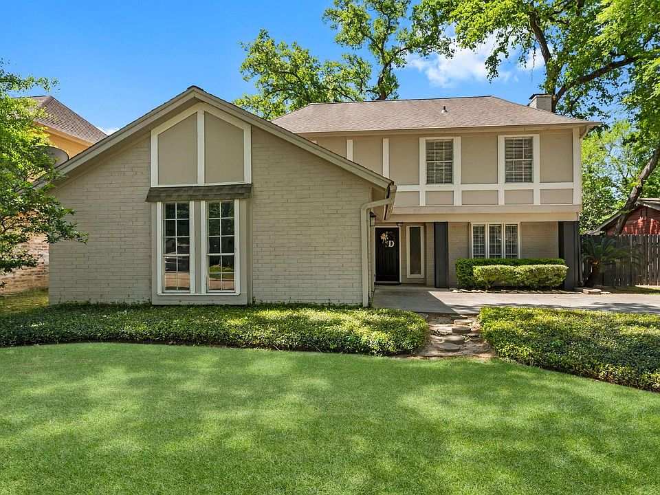 Beautifully updated English Tudor style home nestled on a sprawling lot in Enchanted Oaks! Mature trees give life to the subdivision name and provide just the right amount of shade on a warm and sunny Texas day. Natural light pours into every room making this home light, bright and airy! Designer touches throughout home include Granite in kitchen and bathrooms, wood and HPV floors, wainscoting in family room, and beautiful painted brick fireplace! Large patio area in fully fenced backyard with plenty of room for a pool! Klein Schools and easy access to I45,Hardy and 99. You don't want to miss this one!