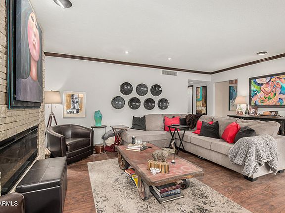 Fantastic opportunity to own this delightful 3-bedroom residence on a coveted corner lot! You're welcomed by a 2-car garage and a landscaped front yard. Inside, you'll find an inviting living/dining room with vaulted ceilings, a soothing palette, and durable tile flooring. Gather loved ones in the family room, complete with a fireplace for cozy evenings. The kitchen comes with quartz counters, crisp white cabinetry, pendant/recessed lighting, a decorative tile backsplash, stainless steel appliances, and an island with a breakfast bar. Double doors lead to the main bedroom, featuring soft carpeting, an ensuite with dual sinks, and double built-in closets with mirrored doors. The enchanting backyard boasts a covered patio and a refreshing pool for cooling down on hot days. Make this yours!