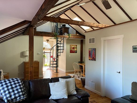 Your chance to live in an authentic post and beam barn within walking distance to train, grocery and restaurants! The red barn on Ferry (the main house which is not part of this rental listing is behind the barn on Elm Street) is a one bedroom apartment with full kitchen, living room, dining area and bonus loft space perfect for working from home. Enjoy off street parking, washer/dryer, dishwasher, efficient a/c, walk out deck and new kitchen and bath. Completely remodeled in 2021, the barn's gleaming floors, new surfaces and skylights offer a light, modern home in a beautiful historic building and neighborhood. Landlord pays water and waste, tenants pay gas/electric. Barn has its own driveway, off-street parking and entrance. Please no smoking or pets. Apartment for rent is the Barn Apartment. Although the USPS address is on Elm Street, the Barn Apartment is at the rear of that property but has its own driveway and yard (for exclusive use of tenant) off Ferry Blvd (Google Maps shows approx location as 27 Ferry Blvd but this is not the official address). There is parking in the driveway for two cars. Barn is no smoking. The pool and yard of the main house which is behind the fence from the Ferry Blvd side of the barn are not included with the rental.