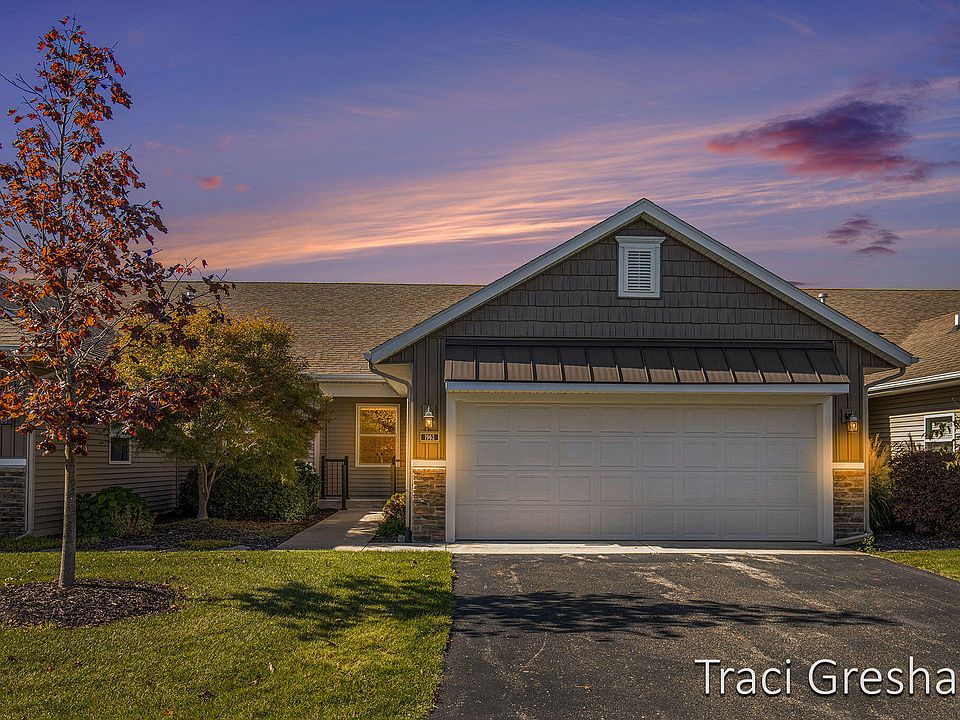 *Open House Canceled, Condo Under Contract.* Located in the highly sought-after Amber Creek development within the popular Byron Center community, this meticulously maintained 2-bedroom, 1.5-bath condo offers an inviting blend of comfort and convenience. Tall ceilings and beautiful wood floors flow through the main living areas, enhancing the open layout, which is perfect for both everyday living and entertaining. The kitchen provides ample counter space that doubles as a casual dining option. The main floor also features a second bedroom, convenient laundry, and a half bath. The primary bedroom serves as a peaceful retreat, complete with an ensuite bathroom featuring a zero-threshold shower. The expansive unfinished basement offers potential for customization, allowing you to create additional living space and build instant equity. Less than a mile from downtown Byron Center, Whistlestop Park, the library, and Kent Trails Trailhead, this condo combines modern living with prime access to local amenities. Call today to schedule your private showing!
