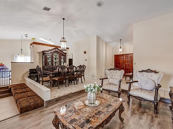 Over $70,000 in recent upgrades: brand new circular driveway, full exterior paint (house, roof, garage door, and fence), roof maintenance, and resurfaced pool tiles. Beautifully maintained 4-bedroom pool home in desirable Cypress Run. Open floor plan, and high ceilings. Priced at $795K, well below replacement cost given improvements. Features large vaulted smooth ceilings upon entering with tile and wood-like vinyl flooring throughout. Custom kitchen with Corian countertops for durability and repairability, an island for extra workspace for food prep, and S.S. appliances. Exterior features Clusia hedges for privacy, providing a striking visual element. Extended patio surrounding the pool with travertine tile! The roof was replaced in 2009.