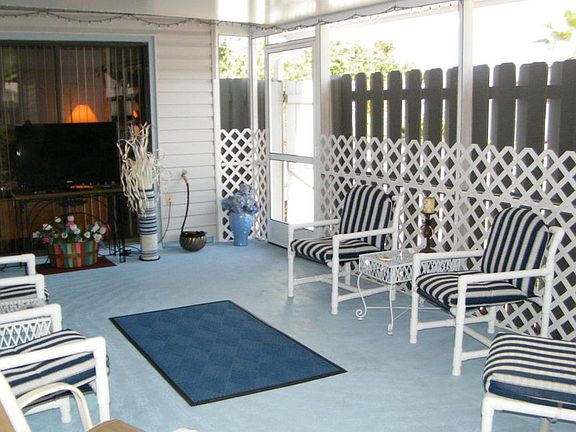 MOVE-IN READY, SINGLE-STORY COURTYARD HOME MINUTES TO EVERYTHING. Huge 28 x 12 screened porch with insulated roof adds loads of livable outdoor space. NO CARPET in this pristine 2/2 with high ceilings, two huge bedrooms both with walk-in closets and plenty of storage. Newer AC and appliances-see list of all the updates. Spacious open floorplan with soaring ceiling feels like a single family home. Plenty of green area right outside the door, and this one is just steps to the lovely heated community pool. Shopping, banking, dining & more are a few minutes away.