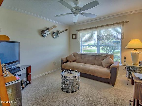 LOCATION and STATELY ELEGANCE are just two reasons why you will want to see this beautifully appointed home today. Conveniently located in the Village of Pinellas not far from the amenities that Lake Sumter Landing has to offer and also the Brownwood amenities. The SPACIOUS KITCHEN with eat in dining space has Granite Countertops and lots of counter space which is perfect for entertaining. CROWN MOLDING, LARGE INDOOR LAUNDRY ROOM, SPLIT BEDROOM PLAN separating the master bedroom from the guest bedroom area (third bedroom has no closet and is currently used as den). The MASTER BEDROOM suite has two walk in closets and the master bath has dual sink vanities. The covered and screened lanai is sure to be one of your favorite places to relax. This is a must see.