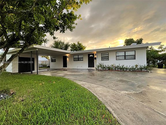EXTRA LARGE & LOW taxes!! Spacious 3/2 in the heart of Miami Gardens. New roof 2025 and newer AC! New waterproof LVP floors and freshly painted. This home has a generous split floor plan spread out over 1,700sqft! With separate living and dining rooms AND a large family room that could be used as an office, den or playroom, you'll have all the room you need! Cozy up inside by the fireplace or enjoy a fully fenced backyard with mangos, avocados, plums and other tropical fruits. The extended driveway has a carport with a storage room and enough space for an RV or boat. Best of all - No HOA! Conventional, FHA and VA offers welcome! Come see and appreciate this home today - it could be yours!
