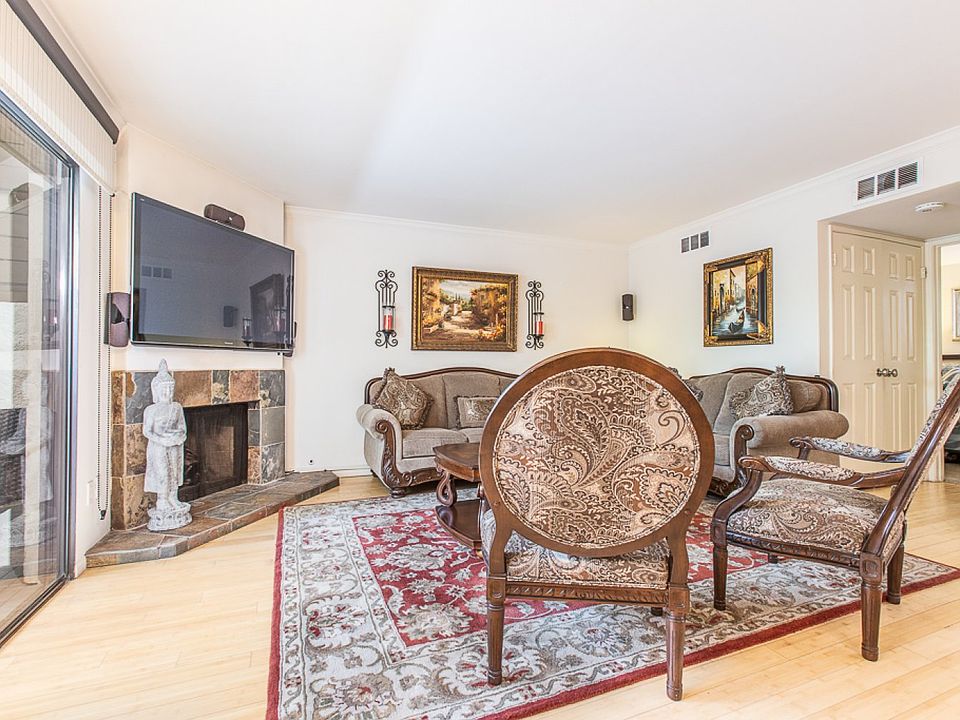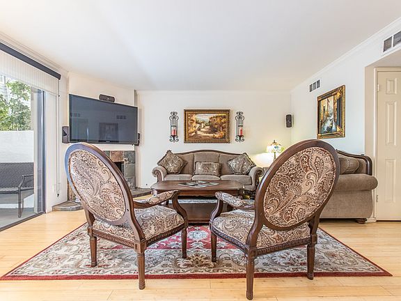 Hello from Reseda where this 3-bedroom, 2.5-bathroom, 1,410-SqFt townhome is waiting for you to call it your own! Upon entry, note the spacious living room featuring a beautiful decorative stone fireplace, light honey colored flooring, and access via sliding glass doors onto the private patio space. Into the kitchen, find a splendid LED light strip highlights the tile backsplash under the ample cabinetry, granite countertops, built-in appliances plus, a garden window. The designated dining room space is a comfortable and warm space for your everyday dining or when entertaining guests and includes access to the back-patio area. The first level includes a guest room and a powder room too. Upstairs, a convenient space for a stackable washer/dryer, additional built-in storage space, a main bathroom featuring a granite vanity sink, and main bedroom. The master bedroom offers a private balcony space, decorative fireplace, slopped high ceiling, walk-in closet, and ensuite bath which includes dual vanities with granite counters and a tiled shower over tub. Close by to Runnymede Recreation Center, markets, popular shops, and minutes away from Pierce College! Showings this Saturday 2-4PM!