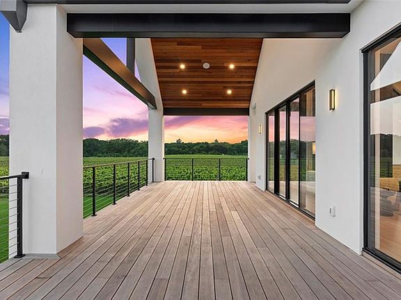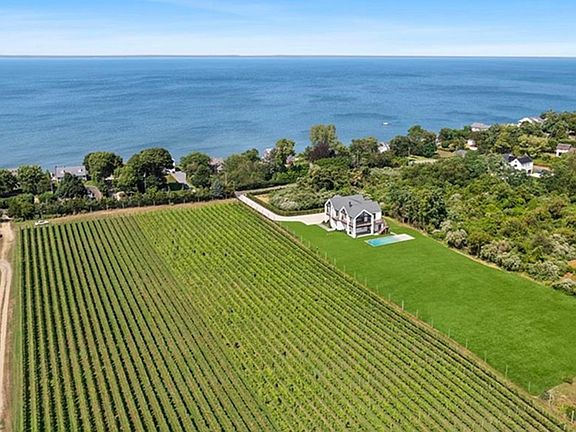 Experience the epitome of luxury living in this modern newly construction estate, a truly unique offering on the East End framed by breathtaking vineyard views. This newly constructed estate is move in ready with C/O in hand and spans an impressive 7,300 square feet, is a testament to meticulous craftsmanship and thoughtful design, where simplicity meets elegance. Upon arrival, you are greeted by a generous foyer leading to four luxurious ensuite guest bedrooms, each equipped with spa-inspired bathrooms, offering a haven of comfort. This level seamlessly flows into a side yard, featuring a covered patio and a heated gunite pool, offering sweeping views of manicured vineyards and farmland. A breezeway connects the side entry mudroom to a three-car garage, while the home's three levels are easily accessed by a floating staircase or elevator. The top level is a hub for unforgettable gatherings, boasting a custom chef's kitchen with creative seating and double islands. A cozy lounge area, adorned with a striking gas stone fireplace, complements this space. The expansive great room, complete with a grand dining area, features two sets of sliding doors that open to a wrap-around mahogany deck, framing the stunning vistas. The primary ensuite offers a private balcony, inviting fresh air and vineyard views, while the spa-inspired bathroom indulges with a soaking tub and double shower. Ample storage is provided in dual custom closets. The lower level hosts two additional bedrooms sharing a full bathroom, along with a versatile recreation space adaptable for a gym, studio, home theater, or wine storage. Steps from this area lead to the outside, connecting you with nature. Step outside to a 20'x 40' heated saltwater gunite pool, surrounded by a bluestone perimeter for lounging and relaxation and a full bathroom, conveniently located near the patio. The expansive yard presents limitless possibilities, from a boutique vineyard to horse paddocks, tennis courts, or gardens for farm-to-table cuisine and with town permissions, a bed and breakfast making the potential for this property truly inspiring. Located just moments from the gorgeous Long Island Sound beaches and where luxury meets tranquility in the heart of wine country.