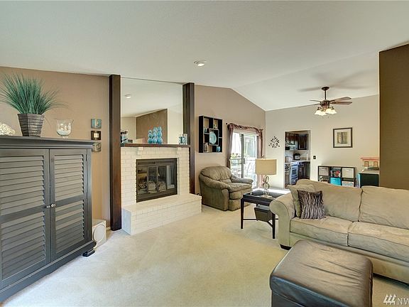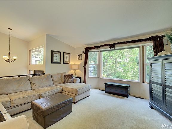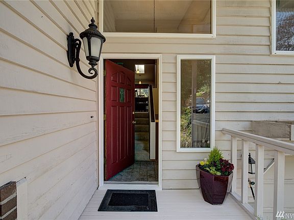 This well -maintained home lives large. Situated down a private lane...peace & serenity. Upstairs is a spacious living room with fireplace, 3 good-sized bedrooms, large dining room, sliders to deck and updated kitchen. On the lower level is a fabulous media room with bar, new, cozy wood stove and 4th bedroom/currently a music room. Lots of storage. Beautifully landscaped with 2 decks and Koi pond. Neighborhood parks nearby. Located in popular Northshore school district. Open Sat & Sun 1-3.