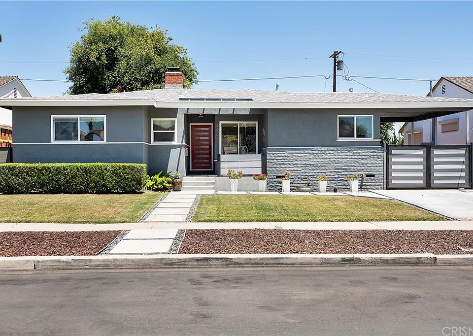 This mid-century ranch-style home was remodeled in 2016 & recently updated further. Stunning curb appeal with a welcoming, red front door and rear yard access! The kitchen is open up to the dining area/living room creating a beautiful large space. White shaker cabinets, with a 5' center island are crowned with stylish Calacatta quartz countertops. Two pendant lights and a rustic metal chandelier add interest, along with recessed lighting throughout. Faux distressed wood, porcelain tiles evoke a beachy vibe. The wood-burning fireplace is wrapped floor to ceiling with silver granite ledger stone, with a black marble hearth and a walnut mantle. All the windows and the sliding door were replaced with double-pane. A complimentary-style, barn door opens to the laundry room and side-exit door. The lush carpet was installed in all bedrooms in June 2019. One bedroom was converted to an office with newly painted built-in cabinets/shelves. The air-conditioner is newer, and custom flat-shades are installed on the windows. Sliding glass doors open to a private yard with a pool. The neighborhood is a friendly environment where people stroll their little ones & walk their dogs. Haynes Street is u-shaped with very little traffic, making it a safe place for kids to learn to ride their bikes. Living next to the bike path has been quieter than expected, well-maintained landscaping provides privacy & distance from the path. The trade-off is an unobstructed rear-view of the hills and trees.