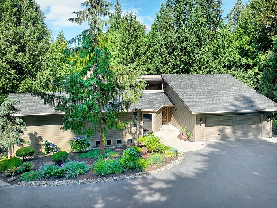over 2 acres just for you! This is a rare gem with custom features throughout: AC, designer kitchen with granite, Italian tile backsplash & floor, high-end appliances, vaulted ceilings, custom closets, large energy efficient windows amazing views & ample natural light. Upper level has living areas and Primary BR with 5-piece bath suite. Lower level: 3 bedrooms, 2 bathrooms, theatre with surround sound tech, additional bonus room which opens to the back. Impressive grounds with tiered patios, elevated deck, and carefully maint. yard. All landscaping incl. Heated garage, EV charger, plug for generator. Prefer 16-mo lease. Pets CBC, $50/pet/mo.