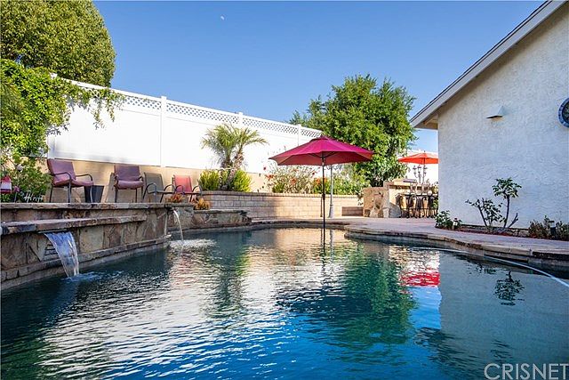Beautiful corner lot, pool home on a cul-de-sac. This home features 3 bedrooms with 2 full bathrooms. Enter into the living room with the warming fireplace awaiting you. Tastfully designed master suite with a Jack and Jill bathroom. Each room features panel doors and ceiling fans. Dual paned windows throughout. The updated kitchen is open and bright letting the natural light pour in with views of the backyard, featuring a dual oven with stove. The backyard is an entertainers dream, featuring a Pebble-Tech pool and spa with custom stone coping, hardscape and spillways. The pool is set up for saltwater use as well. This generously sized private back yard also features a large built-in barbeque island with a wet bar and refrigerator, stamped concrete and a custom built outdoor fireplace. Newer HVAC, A/C and Water Heater at this home, makes it surely one you won't want to miss.