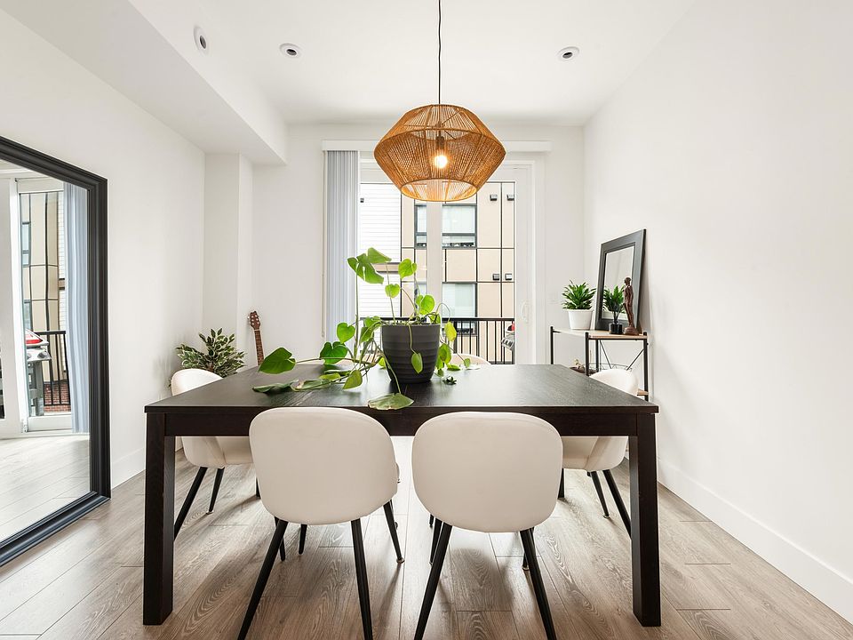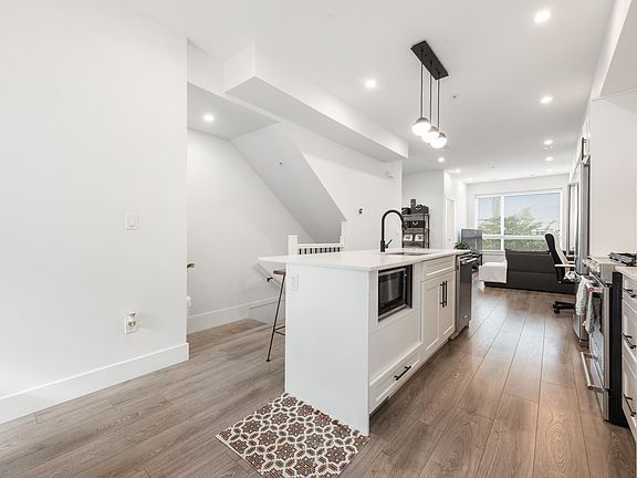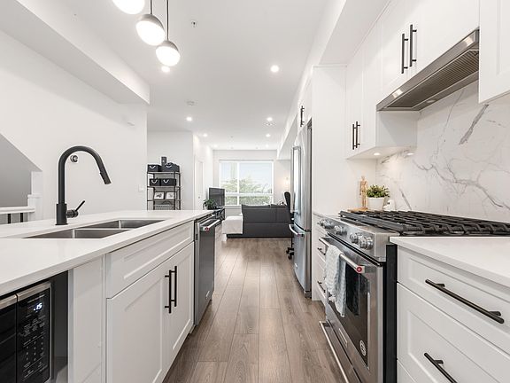 Welcome to Winston Terraces - a boutique collection of 26 thoughtfully crafted homes in the heart of Langley. This modern 2-bed, 3-bath townhome blends contemporary design with everyday comfort. The main floor features an open-concept layout w/ high ceilings, laminate flooring, & a stylish kitchen complete w/ quartz countertops, stainless steel appliances, & an oversized island perfect for entertaining. You’ll also love the added comfort of air conditioning during the warmer months. Upstairs, enjoy two spacious bedrooms, including a bright primary suite with its own ensuite bath. Head up to your massive rooftop patio for morning coffees, sunset dinners, or weekend BBQs - an entertainer’s dream! Ideally located just minutes from downtown Langley, shops, dining, parks & Fraser Hwy.
