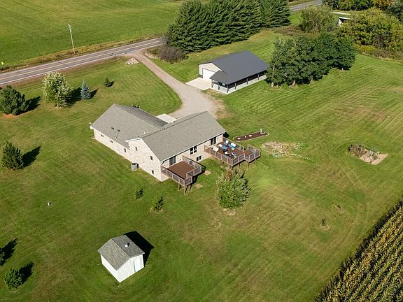 Roughly 15 (ish) acres of rolling, usable ground wrapped an all-brick 4BR/3BA with 3,300+ finished sq ft that the Big Bad Wolf couldn't huff, puff or budget-cut his way through. Oversized attached garage for the daily grind, plus a true shop: a stick-built 36x48 detached garage with concrete, power, 10' doors and 10' overhang-bring the trucks, toys, and tall projects. Inside you'll find smart updates, easy-flow living, and two decks with composite decking and railings; one that is dedicated to the primary suite. That suite checks boxes with a huge walk-in closet and a private bath with new flooring, then steps out to its own deck for morning coffee. The lower level is built for living: a huge family room for game night or movie marathons, with three additional bedrooms down so everyone gets space without losing the hangout. The yard is gorgeous, the views stretch wide, and the land is the kind you can actually use. Garden, play, park the gear, repeat.