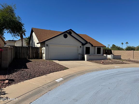 Beautiful cul de sac home with 3 bedrooms, 2 bathrooms and a 2 car garage! Backyard is an oasis with a pebble tec pool, build in BBQ and covered patio! Home features laminate and tile flooring throughout - no carpet! Vaulted ceilings! Open floor plan! Stainless steel appliances including fridge! Washer/dryer included! Cozy fireplace in the living room! RV gates on both sides! Beautiful paved courtyard in the front! Built in 1987! This home is conveniently located near the 101! Mountain views! Right on the greenbelt/wash in Overland Trails subdivision! Don't miss out - this home won't last long!