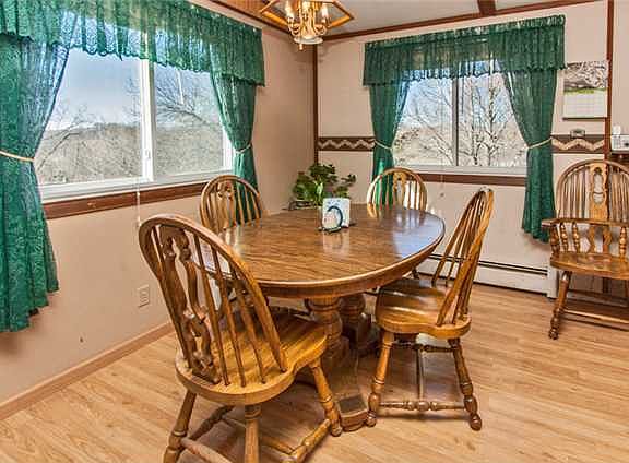 With nearly 10 acres, 2 BR ranch is a piece of paradise for someone looking for country life. Covered front porch greets you as you walk into the vaulted living room area. Kitchen and dining area have laminate flooring. Two bedrooms and full bath on main floor. Full unfinished basement has poured walls and lots of potential. Porch/mudroom off back of home. Updated windows. The outdoor living is really where it's at, with large deck, stone outdoor fireplace, and big yard. Currently set up for horses, there is a metal building, and fencing set up to accommodate your critters. The pond is nicely situated for animals to use or for fishing.