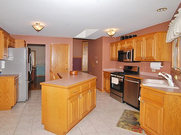 Beautiful 4 bedroom step ranch situated on a HUGE .67 acre lot in a super location of Mokena! The all brick exterior has been accented with cedar siding and features a large fenced yard with shed and paver patio. The interior has been well maintained and offers a Formal Living room with 5 panel bayed window. A formal Dining room with hardwood flooring. Large Kitchen with stainless steel appliances, custom oak cabinets, large island with breakfast bar, pantry closet and a Dinette with patio access! From the Kitchen you can access the spacious Family room with vaulted beamed ceiling and brick fireplace. Also, on the main floor are 4 spacious bedrooms including a Master with tray ceiling, dual closets (1 is a walk-in) and a private bathroom! Additionally, there is a partial basement which has been finished with a Recreation room! Close to parks, schools, shopping and easy access to the Metra station!