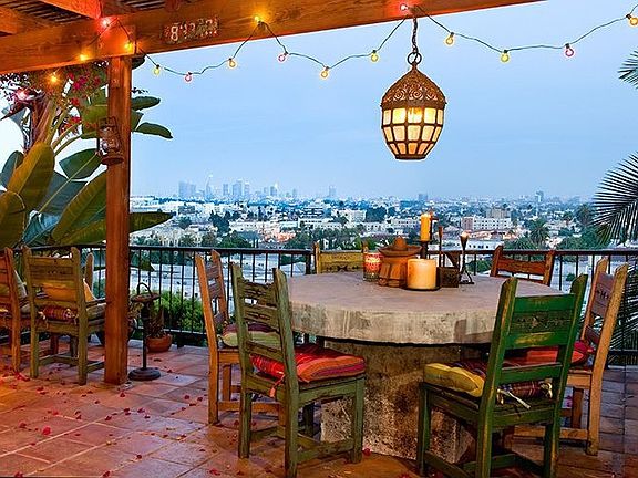 Inside the gates of Legendary Laughlin Park. Step inside the carved wood doors and feel transported in this rare and uncommon environment. The setting unfolds with a warm and inviting open floor plan and a long veranda offering indoor/outdoor living at its best. Framed by lush and tropical landscape, the dramatic city views are enjoyed from every room. 2 fire places, 4 bed/4.5 bath and den. Master suite has a sitting room/ofc and view terrace. Open Chef's kitchen with top appliances and built-in eating area. The fantastic swimmers pool with spa is surrounded with entertainment/sun terraces a fire pit, fountain and yard. Additional terraced gardens continue with mature trees and lush foliage. A great value and one of a kind!