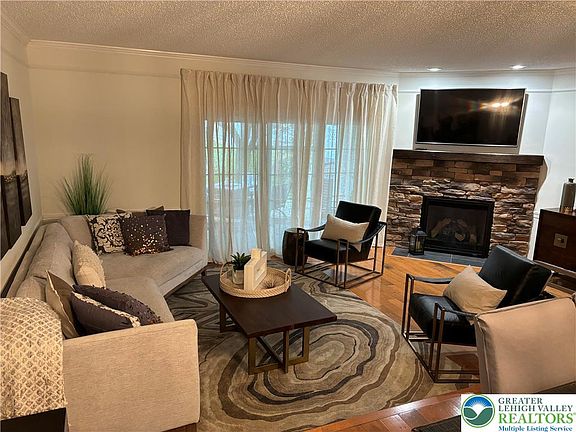 Society Hill townhouse for rent! Come and see this well appointed and beautifully updated 3 bedroom, 2.5 bath townhome. The main level features a large eat-in kitchen with timeless white cabinets, granite counters, and a stainless steel appliance package. A bright and spacious sunken living room and dining room combination with a gas fireplace. Across the entire back is a covered paver patio that extends to an open air patio with 2 storage closets. Upstairs, you'll find the primary bedroom with double closets and en suite bath! Along with 2nd and 3rd bedrooms, laundry and hall bath. Beautiful engineered hardwoods flow throughout this spacious floor plan. Walk to Main Street Hellertown shops and restaurants. Hop on the rail trail or spend time sitting by the neighborhood's pool! This splendid community offers convenience of location and lifestyle. All outside maintenance taken care of and close to Route 78, 309, Promenade Shops and Lehigh Univ. Saucon Valley Schools - No pets and no smoking, please!