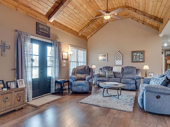 Amazing 3 bdrm 2 bath home situated on 3.98 Acres. Easy access to I-65. No City taxes. In-ground pool with slide. Outdoor seating area with fireplace. Covered front and back porch. Detached over-sized 3 car garage. Concrete driveway. Vaulted ceiling in the great room. Luxury plank flooring. Store fireplace in great room. Double vanity in master bdrm. Fenced.