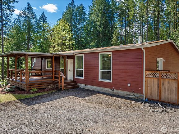 Charming 3-bed, 2-bath manufactured home on 2.18 acres in Poulsbo! Just 3 years old, this home features an open layout, great natural light, and a spacious deck for outdoor enjoyment. Includes a detached carport, a storage shed, and a huge 1,500 sq ft shop—perfect for hobbies/storage or running a home based business. Love to travel or host guests? You'll appreciate the dedicated RV parking with septic hookup—a rare and convenient bonus! Beautifully landscaped with mature plantings, offering a peaceful retreat while still close to town. Located just a short drive from downtown Poulsbo, local shops and schools. This home offers country living with convenience. A must-see property with space to live, work, and play!