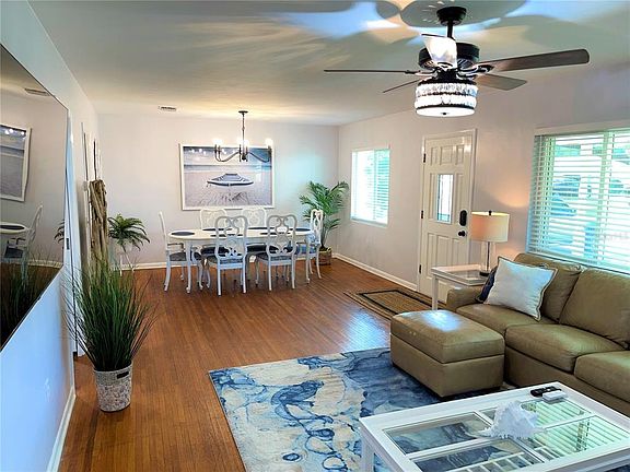 Furnished w/ All Utilities included. AVAILABLE September 1st, 2025. MINIMUM 3 MONTH STAY.. . What better way to relax and decompress than staying in this freshly renovated home with soothing colors and coastal feel. Right in the heart of Clearwater this three-bedroom, two-bathroom home has been recently remodeled with gorgeous interior and brand-new furnishings throughout. Entertain in an open living room/dining room combination that is both elegant and relaxing. The kitchen features an intimate bar top table great for dining, wine tasting or just enjoying some local take out. Sleep soundly on the luxurious king-sized bed in the master bedroom with ensuite. The bonus Florida room has an Ernest Hemingway feel, with knotty pine walls and a wood burning fireplace, just beyond that is the screened porch and completely fenced in private back yard. The work at home office has views of gorgeous live oaks just across the way and another desk is furnished in the Florida room. Every creature comfort and amenity you would find in your own home is provided, including a well-appointed kitchen. Safe and desirable location in Clearwater, easy commute to Tampa or St. Petersburg. All within a very short distance of the beach, restaurants, bars, fitness & shopping. Beautiful Clearwater beach is just a 13-minute drive away and Tampa International Airport is only 22 minutes. This spacious one-story home meets high standards of comfort, quality, and style. You will not be disappointed. Pinellas County transient rental tax of 13% tax will be applied to all short-term rentals less than 6 months. NO PETS. Rates are subject to change during the peak season.