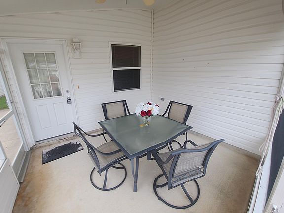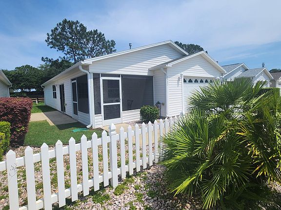 FULLY FURNISHED!! Monthly terms available. See Pricing Beautiful 2/2 Cabot Cove Patio Villa in an excellent location between Lake Sumter Landing and Brownwood. The well-maintained low maintenance landscaping provides for an inviting view of the entranceway. The screened LANAI is the perfect place for your morning beverage and planning your activities for the day. Upon entering, step into the open floorplan with VAULTED CEILINGS and new carpet throughout. The light and bright kitchen offers a breakfast bar, white cabinets and a large closet pantry. Just off the kitchen is the conveniently located inside laundry room. The spacious master bedroom offers an en-suite bathroom and large walk-in closet. Sliders from the dining area lead to the side patio for outside entertaining with no houses behind for added privacy.