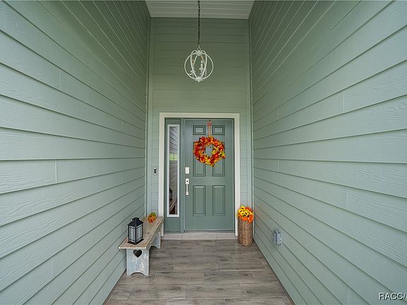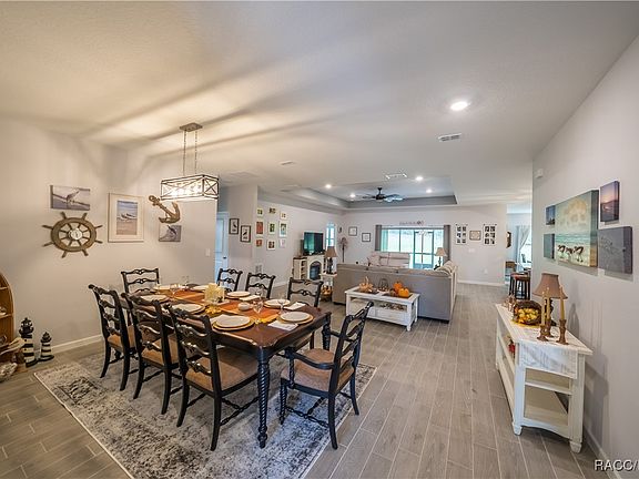 Tucked away in the peaceful Grand Park North, this beautifully maintained home is framed by mature landscaping, setting the tone for comfort and easy Florida living. As you arrive, you’ll be greeted with fresh pavers, porcelain wood-look tile, and upgraded dusk-to-dawn lighting that create an inviting “welcome home” feel with little to no maintenance required. Inside, an open, flowing floor plan is enhanced with upgraded lighting and ceiling fans throughout, giving every space a fresh and stylish touch. The kitchen shines with dimmable under-cabinet lighting, a reverse osmosis system, and instant hot water at the sink—providing clean, crisp water at your fingertips. A large island with designer pendant lighting offers the perfect gathering spot for entertaining or everyday living. The primary suite serves as a private retreat with a spacious bath and walk-in closet, while guest bedrooms are perfectly sized for family or visitors. A thoughtful laundry room with utility sink makes chores a little easier. In the garage, you’ll find a freshly epoxied floor, attic stairs, a parking alarm system, and MyQ smart doors for convenient access from anywhere. Step outside to the screened back porch, finished with wood-look porcelain tile, ceiling fans, and lighting—ideal for relaxing evenings. The yard stays green year-round with a Hunter smart irrigation system (phone-controlled) and a separate irrigation meter to save on utility costs. Full gutters, five downspouts, and French drains add peace of mind. Living here means enjoying more than just your home—you’ll also have access to a sparkling community pool and private river access, perfect for afternoons with neighbors and friends. All this, just minutes from the Rainbow River, KP Hole Park, shopping, and dining, makes this property the perfect blend of small-town charm and outdoor adventure. Whether you’re looking for your forever home or a seasonal retreat, this one truly checks all the boxes!