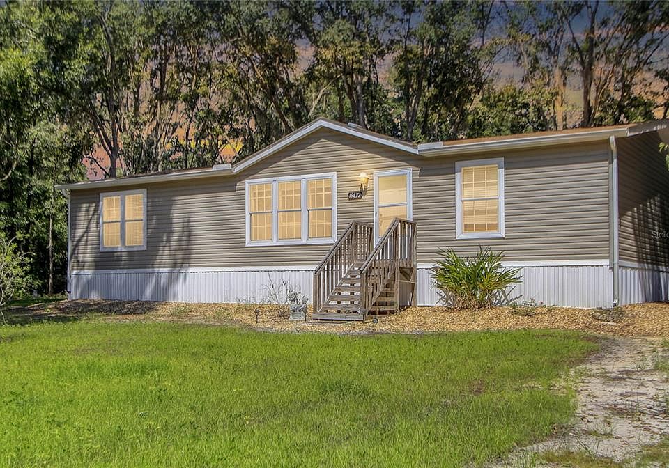 YOUR OWN PIECE OF PARADISE AWAITS! Quiet rural setting with the privacy you desire, centrally located between Ocala and Gainesville. Make your next home this 3 Bdrm/2 Bath LIKE NEW 2021 Jacobsen Manufactured Home sitting amongst beautiful Live Oaks on a 2.27 Acre High & Dry parcel... zoned Ag. This 1,595 Sq Ft home features a 12’x16’ screened patio and a 12’x16’ deck, leading to your 24’x54” top of the line, above ground pool... professionally installed with 18” in ground. The home offers an OPEN FLOOR PLAN and split sleeping quarters, with the Master Bdrm at one end and 2 Guest Bdrms at the other end. LVP flooring flows throughout the Kitchen & Dining areas, with SS appliances in the SPACIOUS Kitchen, a water purifier/filter at the sink, and a MASSIVE center island/breakfast bar. Disguised as cabinets, you’ll find a HUGE Walk In Pantry... with enough space for a freezer (existing freezer doesn’t convey). The LARGE Master Bdrm can fit a king bed, offers a WI Closet, and an attached Master Bath with a large Garden Tub, WI Shower, and double vanity. Guest Bdrm closets are walk ins too. Interior Laundry. This home also comes with a Water Softener at the well. Rest easy during Florida's rainy season as the home has been wired to run the entire house off a generator with the flip of a switch (generator is not included in the sale). Built to the highest standards, including 2x6 exterior construction and 2x4 interior walls, you’ll love the outdoor fire pit... shaded for summer enjoyment, and perfect for cooler nights. 12'x20' shop/storage, 25' x 50' garden area with raised beds and an 8' high deer fence. Several varieties of young fruit trees and blueberry bushes. Also a full RV pad with 30 amp power, water and sewer hook-ups. MAKE YOUR DREAM A REALITY!