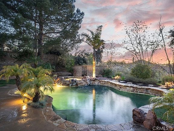 STUNNING SINGLE STORY HOME-in the Exclusive & Rarely Available SUNSET HILLS ESTATES COLLECTION-with a 3 CAR GARAGE & ENTERTAINER’S BACKYARD PARADISE on a LARGE VIEW LOT with a DESIGNER PEBBLE TECH SALTWATER POOL, Featuring Cascading WATERFALL, Built-In SPA, Stamped Concrete, Covered Outdoor Eating Area with Fan, Pull Down Shade, & Built-In BBQ. Features Include High Ceilings Thru-Out, Travertine Flooring, Newer Carpet in Bedrooms, Plantation Shutters, Stainless Steel Appliances, Double Oven, Ceiling Fans, Wrought Iron Gates, Arlo Security Cameras, & Much More. The Kitchen is Open with an Adjacent Breakfast Nook & Breakfast Bar that Looks out to the Gorgeous Backyard. The Family Room has a Cozy Fireplace and Niche for the TV. The Master Suite is Magnificent with Large Walk-In Closet, Adjoining Master Bath has Dual Sinks, Shower & Soaking Tub with Views. Indoor Laundry Room with Cabinetry. Relax in Your Resort-Style Yard Surrounded by Tranquil Mountain Views, offering Peaceful Scenery amidst Quiet Surroundings & Beautiful Landscaping with Custom Hardscape & Lighting. Highly Sought After-Single Story-Homes Like This Don’t Come on the Market Often So Don’t Wait! The Location is Superb while only Minutes to Restaurants, Shopping, Excellent Schools, and Easy Commuting Access Via the 14 Freeway. LOW HOA & NO MELLO ROOS! Original Owners!
