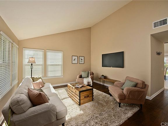 Single Story charmer at the end of a cul-de-sac! This beautiful home features nice upgrades and updates throughout! Real hardwood floors flow throughout the living room and hallway. Vaulted ceilings in the kitchen and dining/family area are highlighted by large wood beams. The kitchen offers custom cabinetry, granite counters, and large island with room for seating all open to a dining/family area with fireplace. Down the hallway you'll find 3 spacious bedrooms which include the master suite. Enjoy beautiful views and sunsets in your private rear yard with covered stamped concrete patio and grassy area. The HVAC and ducts have all been updated, windows are all dual pane, finished garage with drywall, and more! This little pocket neighborhood is located at the top of Whites Canyon just minutes to the new Sky Ranch development which offers a new shopping center set to open later this year! NO Mello-Roos! Located near award winning schools.