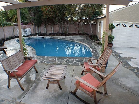 Beautifully remodeled throughout, this property features 4 bed/2ba and is located in a desirable neighborhood of Tarzana. Walk up the inviting flagstone path and inside you will find an open floor plan with hardwood floors throughout, a modern kitchen with high-end Travertine floors, stainless steel appliances, tastefully remodeled bathrooms, a cozy fireplace and double pane windows. Step outside into the backyard and you will find yourself in your own private oasis. Complete with a charmin...