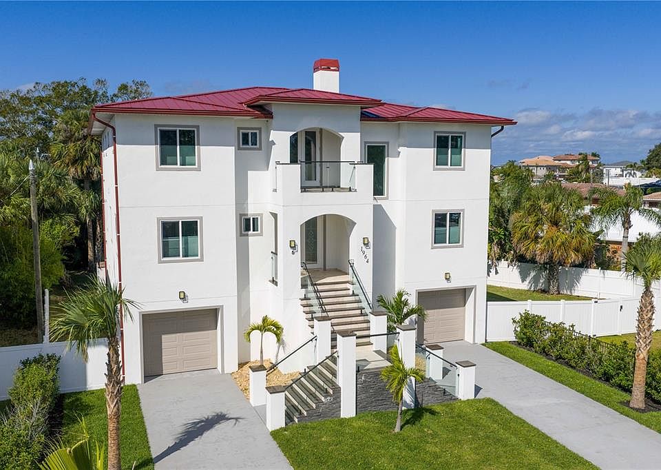 A modern coastal masterpiece in the heart of Dunedin, moments from Honeymoon Island, Main Street’s cafés and boutiques, and the golf course across the street. This new construction home blends architectural beauty and everyday function with 5 bedrooms, 5 baths, impact windows, a private elevator, and 48”×48” designer tile floors. The open living spaces rise beneath double-height ceilings with walls of glass and artful light. The chef’s kitchen features granite counters and seamless flow to the great room. A six-car garage and RV or boat parking offer rare versatility. The bamboo-lined backyard provides space for a custom pool. Across the street, explore the Pinellas Trail stretching from Tarpon Springs to St. Petersburg. Caladesi and Clearwater Beach await—where sunsets and serenity define your everyday life.