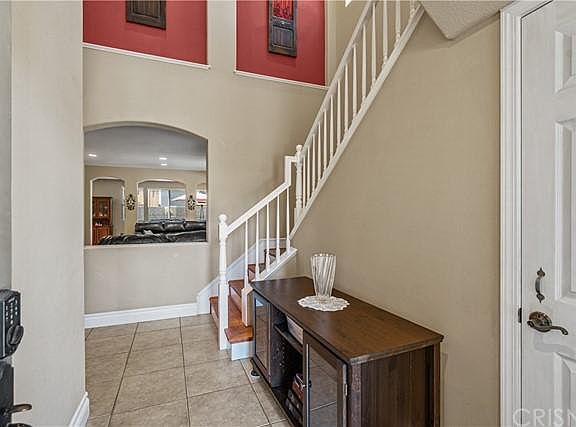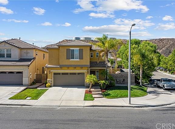 NO MELLO ROOS!!! Wonderful single family home on a corner lot in the Madison tract of the St. Clare community in Saugus Plum Canyon. A beautiful setting greets you from the front yard with palm trees and a stamped concrete sitting area to relax with the family. The main floor is perfect for entertaining. Updated wood type flooring lays way to the living room that isopen to the family room adorned with a stackedstone wall. The kitchen features granite countertops,plenty of cabinet space, newer stainless steel appliances, and a large center island, complete with a breakfast bar, facing the family room, dining area and backyard. Full bathroom downstairs! Upstairs are three guest bedrooms, a guest bath, laundry room and a spacious master suite with walk-in closet and bathroom beautifully updated with new tub and shower, tile floors, quartz countertops, fresh paint and new sinks. Enjoy the wrap around rear yard with two stamped concrete patio area, and a fenced area perfect for the four legged family members. Two car attached garage with a bonus space for extra storage, hobby room, or home gym. A low hoa offers a community pool, park, and sport court just moments from home. Newer HVAC system! Come see for yourself!