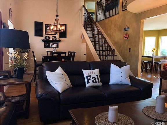 Welcome Home to this Truly Unique 3 Bedroom 3 Bath Spectacular Updated Pool Home. The Entryway Boosts Breathtaking 16 Ft. Cathedral Ceilings, Wood Scraped Laminate Flooring throughout, Formal Dining Room, Cozy Living Room with Wood Burning Fireplace, Light and Bright Kitchen with Stainless Steel Appliances Italian Travertine Backslash, Granite Countertops with Breakfast Bar, the Gorgeous Wrought Iron Staircase Leads you upstairs to your lovely Master Bedroom with Romeo & Juliette Balcony and Custom French Barn Doors that Look out over Living Area. Relax in your Oversized En-suite with large Soaking Tub and Separate Stall Shower, Double Vanity's as well as His & Hers Separate Closets make this the perfect Spa Retreat. Spend Fun Filled Summers in your incredible Resort Style Backyard with custom Alan Jackson designed pool and spa built in 2017. This stunning pool is Wi-Fy connected/controlled and comes with multi colored LED pool lights, 400,000 BTU pool/spa heater, tropical landscaping, spacious covered patio, BBQ/Bar Gazebo, and (2) 6"x 9" Bluetooth enabled outdoor speakers make this an Entertainers Dream Backyard. This home is perfectly situated in the heart of Santa Clarita Valley, near Award Winning Schools, Parks, Bike Trails, Shopping, Restaurants, and is very commuter friendly being only minutes away from Hwy 14 and the Metrolink Train Station. This home shows True Pride of Ownership and is turn key ready for your family.