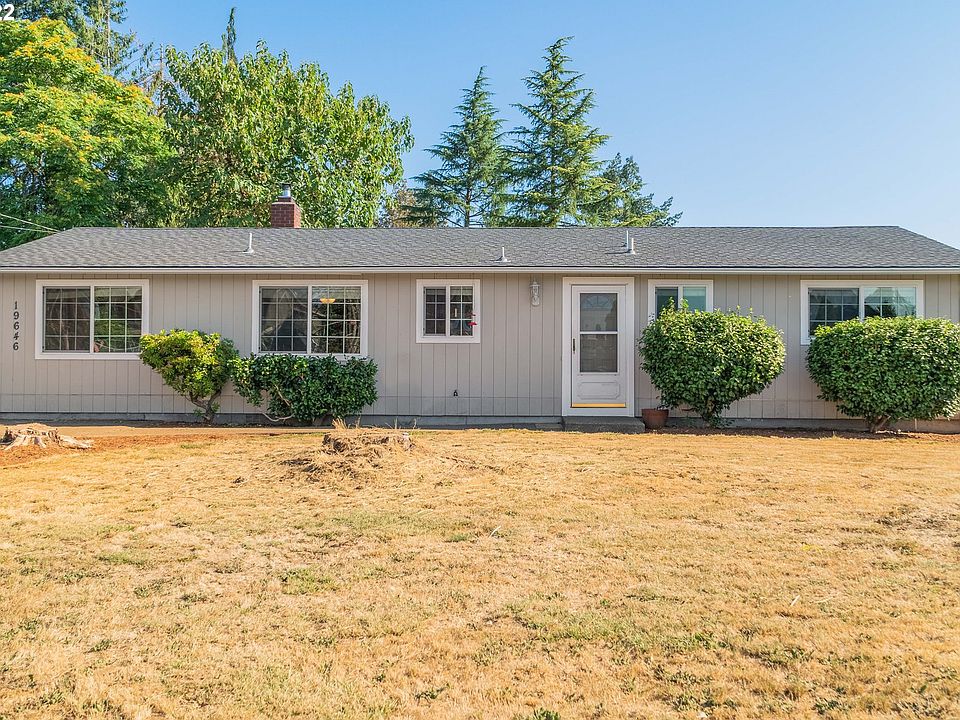 One level living on almost 1/2 acre in Oregon City! Spacious living room w/ hardwood floors, floor to ceiling stone fireplace & French doors to covered patio. Kitchen features tile floors, granite counters, maple cabinets & adjacent eating area. 2 bedrooms w/ shared hall bath. Den w/ slider to backyard & adjacent laundry room. Fully fenced yard, covered patio, RV parking, 2 sheds, new roof in 2017 & newer windows. Only a few blocks to Wesley Lynn Park & 2 miles to shopping & restaurants.