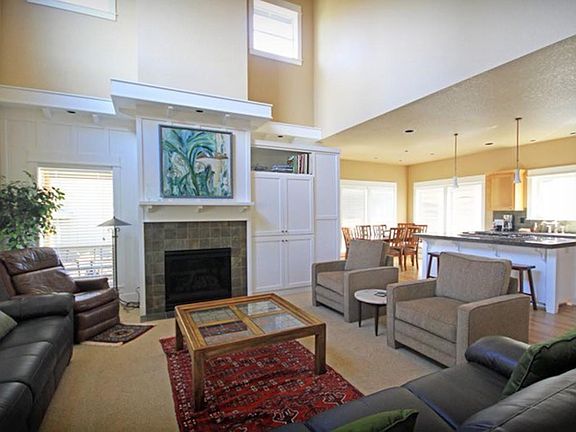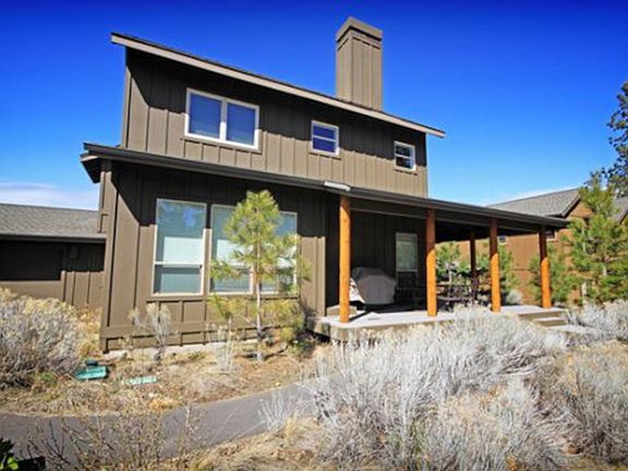 Bright and open River Wild home near Deschutes River trail. Only 11 minutes to Phil's Trailhead, for mountain biking, running and walking, and 23 minutes to Mt. Bachelor Ski Resort. Living room has Gas fireplace, and Television with Roku and DVD player. Dining table seats 8, breakfast bar with seating. Lower level king master suite with Television and en suite bathroom with double vanity, Upper level king bedroom with desk, computer and printer, en suite bathroom. Second upper level bedroom with bunk beds and twin bed. Blow dryers, ironing board/iron, alarm clocks. Washer and dryer, lower level. Natural gas grill and dining for 10 on private deck, lounge chairs. HVAC heated by forced air gas. A/C cooled by electricity. Community pool and hot tub available during season. Gas, electric, internet/WiFi, water and sewer included. Garbage also included; disposal located near community pool/hot tub. Private hot tub on large wrap around deck available at additional (maintenance) cost. No vaping/smoking. No pets. This is an animal-free home. Available starting November 15, 2025. 30 day minimum rental; additional days over initial 30 days will be prorated. Includes all utilities and internet. Garbage included; disposal located near neighborhood pool/hot tub.