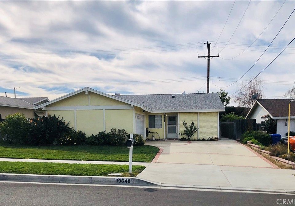 Come see this quaint 4 bedroom + 2 bath single story house. This home boasts a floor to ceiling brick fireplace, new laminate flooring throughout, ceiling fans in every room, new water heater, and a new A/C in 2022. The primary bedroom has an attached bathroom. Large bedroom off the main hallway has built in closet. It can easily be used as a second primary bedroom, den, playroom, or whatever your imagination desires. Another bedroom is being used as an office with direct access to the garage. Backyard has covered patio, new in-ground spa and mature fruit trees.