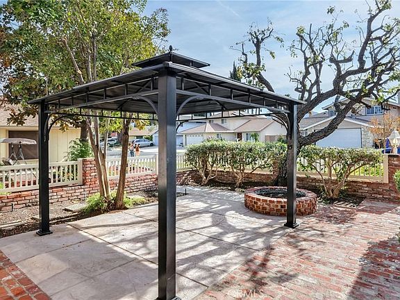EXCELLENT cul-de-sac location for this well-maintained home in popular Mt. Shadows Tract featuring 4 bedrooms, 3 baths, living room with vaulted ceiling, formal dining area with recessed lighting, kitchen adjacent to large family room with shelving above used-brick hearth, ceiling fan, and recessed lighting. Living room, dining area, family room, downstairs bedroom, hallways, entry and downstairs bath, kitchen ceiling and partial walls, stairway walls and ceiling, railings, upstairs landing, upstairs baths all freshly painted. Downstairs bedroom features mirrored wardrobes, custom shelving, book cases, and glass front cabinetry (currently used as office), and new ceiling fan. Kitchen features ceramic tile counters and floor, new faucet, new double stainless steel oven, stainless steel microwave and refrigerator with ice maker, lots of cupboard space, and lovely view of maturely landscaped rear yard. Primary bedroom features crown moulding, mirrored wardrobes and custom closet shelving, private bath with tile shower. Bedrooms 2 and 3 feature mirrored wardrobes, custom closet shelving and ceiling fans. Third bath off upstairs hallway has been freshly painted and has formica-like countertops. Dual pane windows, copper plumbing, PAID SOLAR, newer water heater, water purification system, new forced air and HVAC including ducting in 2019. Recent stucco repairs and exterior paint accordingly. Lots of windows including slider to lovely landscaped rear yard featuring mature trees, 2 lime trees in pots including drip irrigation system, covered open beam patio and separate gazebo with electric receptacle for power. Front patio has pergola for cozy relaxation, stamped concrete and used brick. Stamped concrete driveway. Freshly painted wrought iron gate at entry and right side yard. Freshly painted double door entry, mailbox, entry lamp, coach light, and new doorbell. Great location, good condition. Close to churches, schools, and shopping. NO MELLO ROOS, NO HOA!!