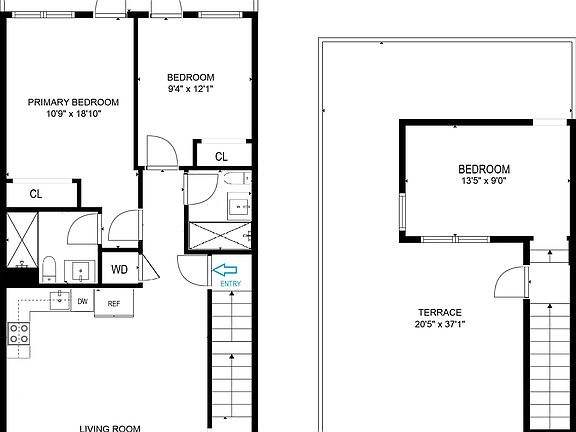 This apartment has 2 ROOF DECK outdoor spaces for your enjoyment.