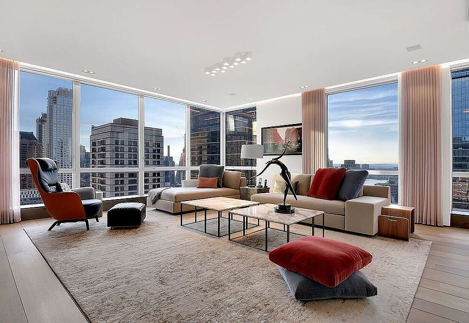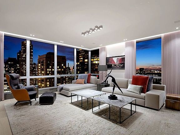 THIS FULLY FURNISHED 5 BEDROOM, 5.5 BATHROOM + GYM INSIDE OF THE UNIT LONG TERM LEASE EXCELLENT CONDITION AMAZING VIEWS This FULLY FURNISHED 5-BEDROOM, 5.5-BATHROOM masterpiece perfectly blends contemporary design with classic sophistication ! The floor-to-ceiling windows throughout the 4,134 square foot apartment showcase views that stretch from the Hudson River across the New York skyline and will take your breath away. The apartment has been renovated to perfection by MSK Design who worked closely with DeBono Brothers Builders and Developers to create this unique residence. The living and dining spaces are sun-drenched and stunning, with a luxurious leather-paneled lounge area. Every detail was chosen to maximize space, beauty and comfort, from the grain leather of the Hermes-inspired custom leather closet, to the calming gray of the handcrafted wide-planked smoked oak floors. Enter the apartment through the grand hall which is ideally configured for an art collection and leads to the textured, travertine gallery, a work of art in its own right. The Boffi kitchen is fit for a celebrity chef, with Giorgio Armani limestone flooring, graphite oak interiors, solid Calacatta counters and backsplash, all Miele and Gaggenau appliances. The majestic master bedroom features closets by B&B Italia, nominated for "Best Wardrobe" at the Wallpaper Design Awards and a high-tech rotating flat screen divider. The window treatments are made of pure Rogers and Goffigon wool, and the lighting was designed by Belgian manufacturer Delta Light to maximize energy efficiency. The home is equipped with Crestron Smarthome technology with central control for climate, lighting and electric shade system. The central air and humidification system is comprised of 6 zones each controlled by separate thermostats for optimal comfort. The Grand Millennium is a five-star doorman building with valet parking and 24-hour security. It is conveniently located next to Equinox Sports Club with its world class facilities including a swimming pool, fitness classes, spa etc., and steps from Lincoln Center, with all of its varied cultural offerings. Lincoln Square offers an engaging ensemble of schools, dining, the arts and shopping, along with being anchored by the world-renowned Lincoln Center for the Performing Arts. It exudes class, style, history and classic Upper West Side charm as it blends pre-war architecture with modern luxury high-rise buildings. NO PETS Smoking allowed:No
