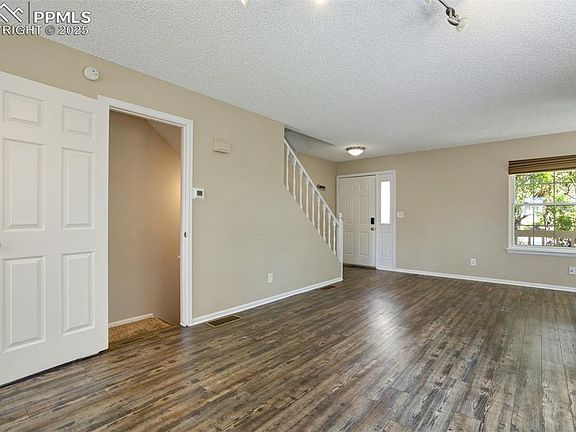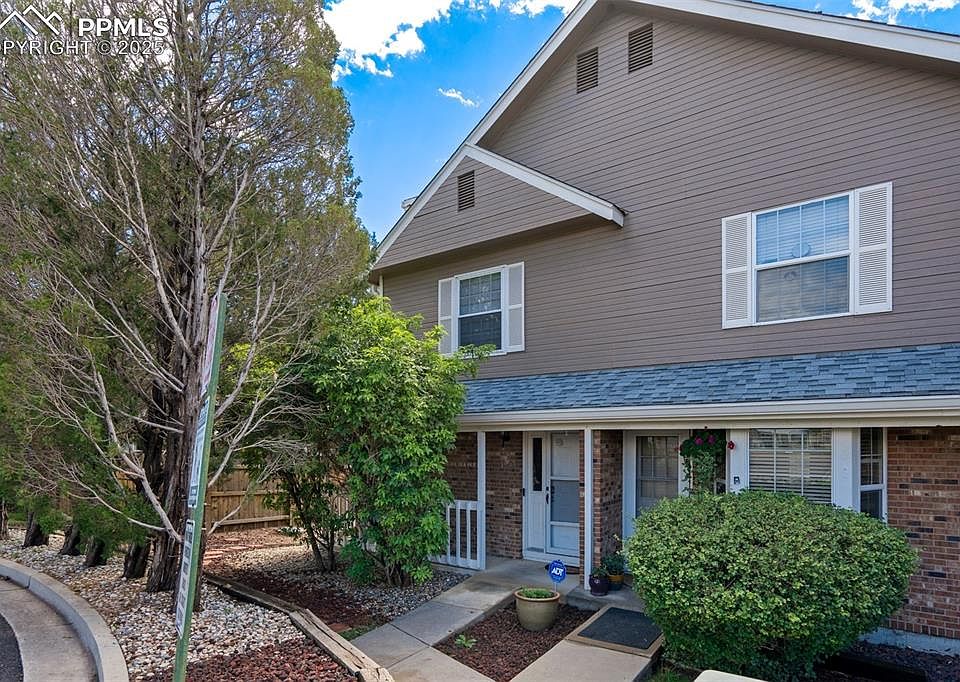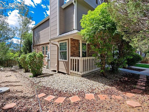 Beautifully Updated 2-Story End-Unit Condo in Serene Garden Setting* Welcome to this move-in ready 2-story condominium end-unit, perfectly situated in a peaceful, landscaped community. Thoughtfully updated throughout, this bright and inviting home offers comfort, convenience, and style. Step from the covered front porch into a sunny living room featuring a cozy wood-burning fireplace and an open-concept dining area. The adjacent kitchen boasts updated countertops with a breakfast bar, stainless steel appliances, a pantry, and direct access to a private deck that overlooks lush green space—ideal for morning coffee or evening relaxation. Upstairs, you'll find two spacious bedrooms with soaring vaulted ceilings and a full bathroom. The fully finished basement offers a sprawling family room, a 3/4 bathroom, and a dedicated laundry area—perfect for entertaining, a home office, or guest accommodations. Enjoy low-maintenance living with HOA-managed exterior care and beautifully maintained surroundings. Located just minutes from I-25, Bear Creek Park, Fort Carson, Cheyenne Mountain, shopping, and more. New Furnace in 2019* Unit professionally replumbed and all polybutylene removed in 2019* New Radon Mitigation System 2019* Levelor window treatments installed in 2020* New flooring throughout in 2020* 8 New Champion windows installed 2022 with lifetime guarantee* New microwave 2023* New Electrical Panel 2024* Skylight in master bedroom* Pet friendly community, 2 minute walking distance from Bear Creek Dog Park With stunning mountain views and thoughtful updates throughout, this charming home is a must-see!