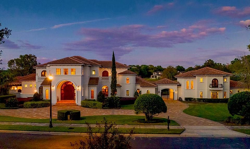 Experience the pinnacle of luxury living in this one-of-a-kind waterfront estate, ideally positioned on a double lot within the prestigious guard-gated community of Lake Markham Preserve, just minutes from Lake Mary, Longwood, Heathrow, and Sanford. This magnificent 5-bedroom, 7-bath, 6-car-garage residence spans over 2 acres of manicured grounds, offering a seamless blend of wellness, recreation, and refined sophistication. A grand two-story foyer welcomes you with a sweeping double staircase, soaring ceilings, and breathtaking views of the sparkling infinity-edge pool that appears to flow directly into the lake. Exceptional craftsmanship defines every space, from the rich wood detailing in the executive office to the elegant finishes throughout the formal living and dining rooms. The primary wing is a private sanctuary devoted to relaxation and health, featuring sea-salt walls and a sea-salt therapy room—a luxurious and restorative feature known to purify the air, improve respiratory wellness, and promote deep relaxation. French doors open from the primary suite and home office to a Tuscan-style courtyard, creating a tranquil retreat complete with landscaping and a soothing water feature. Inside the suite, enjoy a massage room, sauna, private fitness studio, and spa-inspired bath — your personal wellness haven. The open-concept chef’s kitchen flows effortlessly into the spacious family room and entertainment wing, where you’ll find a game room with a private bowling lane, ideal for hosting and entertaining. Large windows and glass doors fill the home with natural light and frame sweeping views of the pool, courtyard, and lake. The second floor of the residence continues the home’s sense of grandeur and comfort, offering a private retreat for family and guests alike. Upstairs, you’ll find three beautifully appointed en-suite bedrooms, each with its own luxurious bath and thoughtfully designed to provide privacy and comfort. The spacious theater room is perfect for movie nights or sporting events, creating a cinematic experience within the comfort of home. A large balcony stretches across the back of the home, offering sweeping views of the infinity-edge pool, lush grounds, and shimmering Lake Markham—the perfect setting for morning coffee or evening relaxation while taking in the tranquil lakefront panorama. Outdoors, the resort ambiance takes center stage. A heated infinity-edge pool and spa, and summer kitchen create the perfect setting for gatherings and sunset dinners. A private boat dock with a covered lift provides direct access to Lake Markham, inviting peaceful mornings on the water or evenings spent boating under the stars. Recreational features abound, including a lighted basketball court, professional shuffleboard court, tiki hut cabana, all within fully fenced and landscaped grounds offering privacy and serenity. A detached guest house provides comfort and independence for family or visitors, featuring its own living area, kitchen, and bath. Additional highlights include a custom wine cellar, whole-house generator, circular driveway, and ample guest parking. Designed for the discerning professional who values both health and sophistication, this estate seamlessly combines wellness-oriented design, European-inspired elegance, and resort-style living in one breathtaking lakefront retreat — a true masterpiece where luxury meets longevity.