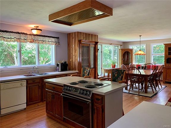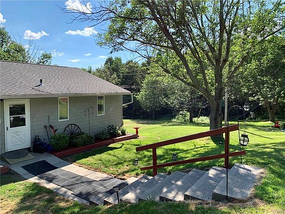 Natural beauty, open floor plan, and flexible living spaces are a welcome combination at this private country home. Sitting on almost 4 acres of land, high above Otisco Lake, this unique property has something for everyone. First level with exposed beams is flooded with light thanks to walls of windows overlooking wooded lot. Country kitchen with pantry and island, adjacent to formal dining room overlooks exposed chimney, living room with slider leading to large deck. Finished lower level, with coal stove, patio access, bedrooms and full bathroom is included in square footage. Large additional space, currently functions as 4th bedroom with own access to patio, fenced yard area. Several heating sources including two newer mini-split heat pump units, also function as central air, and propane heater for lower level. 12x24 barn, additional greenhouse/planting shed, pond and plenty of outdoor privacy thanks to several mature trees. Only 25 Minutes to Syracuse, easy commute to surrounding Finger Lakes region. Marcellus School District! 2020-08-05