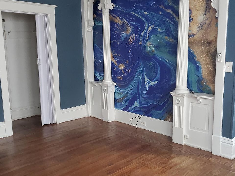 2 bedroom. First floor apt. Pet friendly New paint Shine to floors New Appliances ( stove and fridge) Shared large yard Porch. Street parking. Owner pays water,sew Month 2 month lease . Pet. security. 350.00. For 2 If approved. 3rd pet 25.00 more per month.