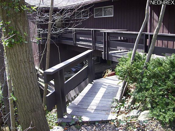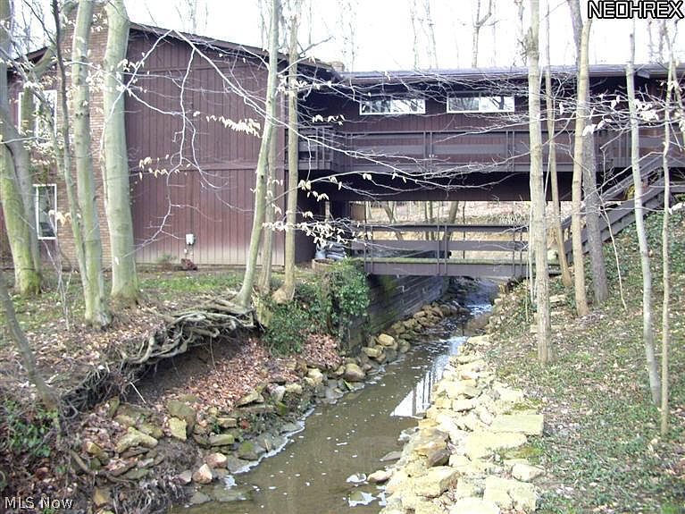A creek runs through it! Unique custom built by Fannin in Co-Moor. Upper level ranch bridging creek for one of Strongsville's most picturesque settings surrounded by trees a brisk walk up from the Metro Parks. Multiple decks for lounging. A hot tub could be added. Upper level entrance opens to an expansive slate foyer & living room with a gas fireplace and skylight. Views from this room & all rooms are stunning. The formal dining room & pulman kitchen combination has served many large family gatherings. The three upper bedrooms all face the rear woods & creek. Closets & cabinets abound. The lower level suite has an entrance foyer, three walk-out sliders with wooded views, a woodburning fireplace and a rustic demeanor. The family room, bedroom, full bath, and laundry room offer many possibilities. Professionally decorated & updated throughout this home will be appreciated by all buyers.
