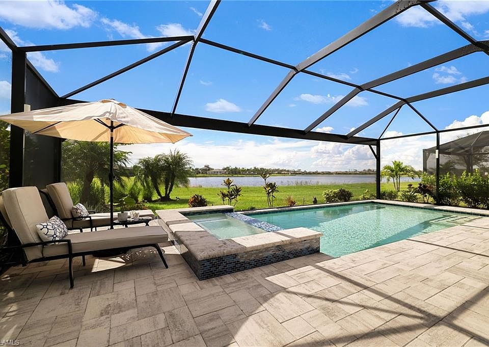 Experience luxury living in this bright and modern Summerwood home by Pulte, located in the prestigious RESORT-STYLE COMMUNITY of THE PLACE AT CORKSCREW. Offering 2,000 square feet of thoughtfully designed living space, this single-family home features 3 bedrooms, 2 bathrooms, a versatile den, and a CUSTOM SALTWATER POOL AND SPA—perfectly blending comfort, elegance, and functionality. The kitchen stands out with 42-inch white upper cabinets, an OVERSIZED ISLAND with QUARTZ COUNTERTOPS and a single-basin sink, a stylish TILED BACKSPLASH, and a WALK-IN PANTRY. The private primary suite is a serene retreat with a spacious bedroom, WALK-IN CLOSET, and a beautifully appointed bathroom featuring a dual sink comfort-height vanity, separate water closet, modern tile finishes, and a FRAMELESS GLASS WALK-IN SHOWER. Two additional bedrooms and a den, situated toward the front of the home, offer ample flexibility for family and guests. A SEPARATE LAUNDRY ROOM WITH BUILT-IN STORAGE and a second refrigerator enhances convenience. Other features throughout the home include ceramic tile flooring, crown molding, window treatments, upgraded lighting and fans, 8-FT DOORS, and a neutral color palette that creates a refined and welcoming atmosphere. This home also includes a Westinghouse dual fuel PORTABLE GENERATOR with 12,000 running kilowatts. The electrical connections have been installed with an interlocking kit and a soft starter on the HVAC condenser, ensuring uninterrupted power supply and maximum convenience. Designed for seamless indoor-outdoor living, the POCKETING SLIDING GLASS DOORS open to an enclosed, extended covered lanai with sliders that create an additional 378 square feet of temperature-controlled space—perfect for year-round enjoyment. The lanai transitions effortlessly to a CUSTOM DESIGNED SALTWATER POOL AND SPA. With SOUTHERN REAR EXPOSURE and sweeping LAKE VIEW through the extended PANORAMIC SCREEN, this outdoor retreat offers an impressive backdrop for relaxation and entertainment, highlighted by stunning sunsets. Positioned on a generous 0.23-acre lot, this residence blends modern design with a serene waterfront setting, creating a lifestyle defined by comfort, elegance, and ease. Discover the exceptional amenities and prime location of The Place at Corkscrew in Estero, SWFL. This sought-after community boasts a variety of features, including an indoor/outdoor restaurant and bar, cafe, 2-story fitness center, resort style pool and spa, splash pad, pickleball/tennis/bocce/basketball courts, playgrounds, dog park and more. With its remarkable amenities, low HOA fees, and strategic location in a flood-free zone, The Place at Corkscrew stands out as a desirable community in SW Florida. Positioned conveniently near shopping centers, dining establishments, entertainment options, RSW Airport, FGCU, and beaches, this community offers unparalleled living. Schedule a private viewing today to secure your new home in this desirable community.