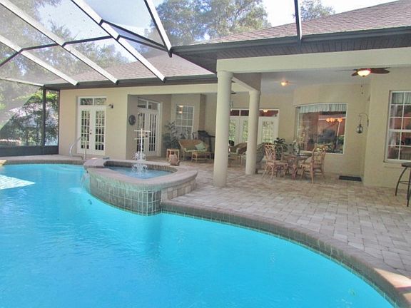 This Exquisite 3BR/3BA is a Definite Must See! Not Only Does This Florida Designed Home Exude a Southern Distinguished Charm Reminding You Of a Picture Out of Homes & Gardens, but it Will Give you A Feeling of Peace and Serenity as you Enjoy This Beautifully Positioned Naturally Wooded Site w/Waterfall Gardens in Rear of Home. As you Enter The Grand Foyer you will be Captivated by the Park-Like Waterfall Garden Views. Four Sets of French Doors Lead to Huge Lanai w/Full Brick Pavers, Custom Salt-System Heated Pool w/Fountain+Heated Jacuzzi+Summer Kitchen w/Cabana Serving Bar, Outdoor Fountain+Firepit, Sprinker/Irrigation w/Well. Inside Features High Ceilings for that Bright Open Feeling Throughout. Beautifully Designed Kitchen w/Stainless Steel Appliances, Granite Counter Tops & Maple Hardwood Cabinets Looking into LR w/Gas Fireplace. Split BR plan, Walk-in Closets, Separate Office,2Car Garage w/side entrance, 2816 Sq.Ft. all on .36 Acre... (Roof-2015, A/C-Carrier Unit Replaced 2014)