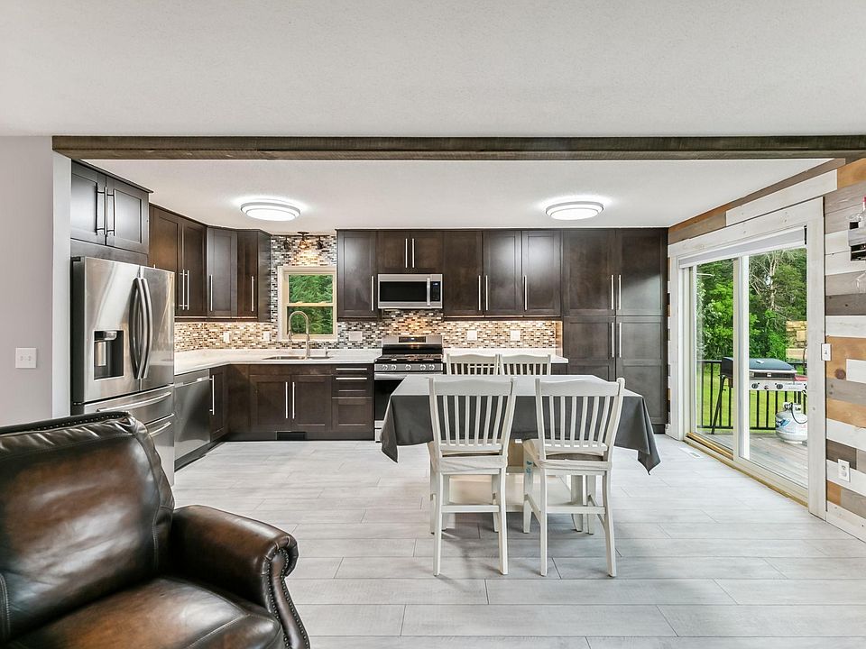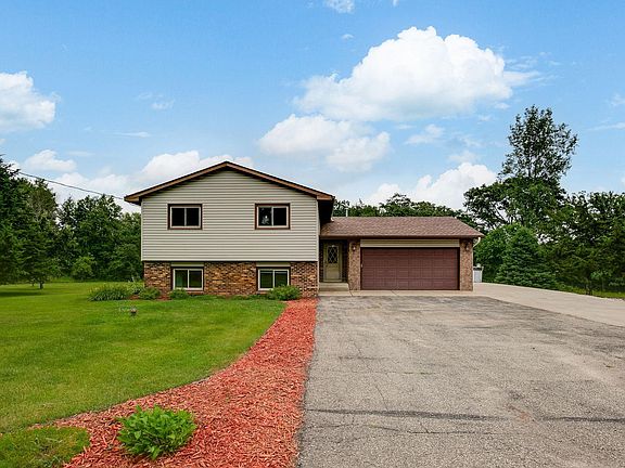 Opportunity awaits you to own this beautiful split-entry home on a private 1+ acre lot! The welcoming entry includes new LifeProof vinyl plank flooring and a custom-built cubby. The upper-level features include a completely remodeled kitchen/dining room, including the removal of a wall to accommodate an open floor plan concept, all-new beautiful cabinets with underneath lights, countertops, flooring, shiplap walls, spacious living room, two bedrooms with updated carpet and a full bathroom. The lower level features the primary bedroom with a walk-in closet and fresh paint, an updated family room with new walls, fireplace surround, new carpet throughout, a 3/4 bathroom, and a laundry room. The exterior boasts of a private lot, additional parking, a patio, a deck, a chicken coop, a heated garage with cabinet built-ins and storage, and a custom-built playground. The property is next to a city park with quick access to Hwy 65. See today!