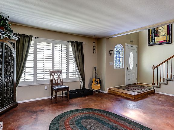 This beauty is just under 1800 sq ft with 3 bedrooms, 2.5 bathrooms, and an adorable library loft!! Amazingly beautiful remodeled kitchen includes stunning Granite counters, stone back splash, wood-like tile flooring and stainless steel appliances. All bathrooms have been given granite counters too! Plantation shutters, dual-paned windows. Gorgeous Stained glass accent front windows and leaded glass front door. Home features a living/dining combo with custom textured concrete overlay flooring and wood burning fireplace. Separate Family room boasts wood-like tile flooring, wainscoting, and plantation shutters with direct access to 2 car garage. French doors from dining room lead out to drought resistant rear yard landscaping. Home offers true RV parking. Storage shed and garden shed are included too! Cul-De-Sac location with only a couple homes gives lots of street play space as well! Bevy of rose bushes and a few herb gardens are part of this charmer too!
