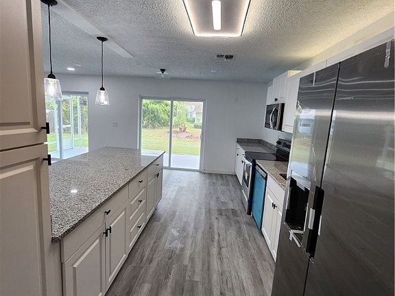 Over 2000 sq feet total. Fully Renovated 3/2. With new white kitchen cabinets/granite counter tops. New SS appl. new waterproof vinyl flooring. New impact windows & doors bring in natural light. New Metal Roof. New A/C. Beautiful landscaping and updated exterior stone on home. 2 car garage and a 4 car driveway. Screened in Patio with new concrete painted floor. This is a solid CBS home.