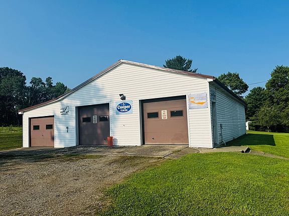 Garage enthusiasts, your dream home awaits! This 3-bedroom, 2-bath ranch is ideally situated just 2 miles from town, offering serene countryside views and a neighboring pond to enjoy from your front porch. The home features a mudroom/laundry room combo, dining room that opens to the kitchen that has a walk in pantry area, the living rooms views are spectacular, a master bedroom suite with private bath, plus 2 bedrooms & a full bath round out the 1st floor. Head down to the full basement, where you can finish for more space, or use for additional storage, a 2-car basement garage, perfect for your vehicles. Outside the back patio is great for entertaining, front deck is so serene. The star of the property is a massive 2,200 sq ft commercial-style garage. With 3 bays, office space, storage rooms, heated by an outdoor wood furnace, this space is perfect for vehicle enthusiasts or anyone looking to run their own repair shop. Don't miss out on this unique opportunity!